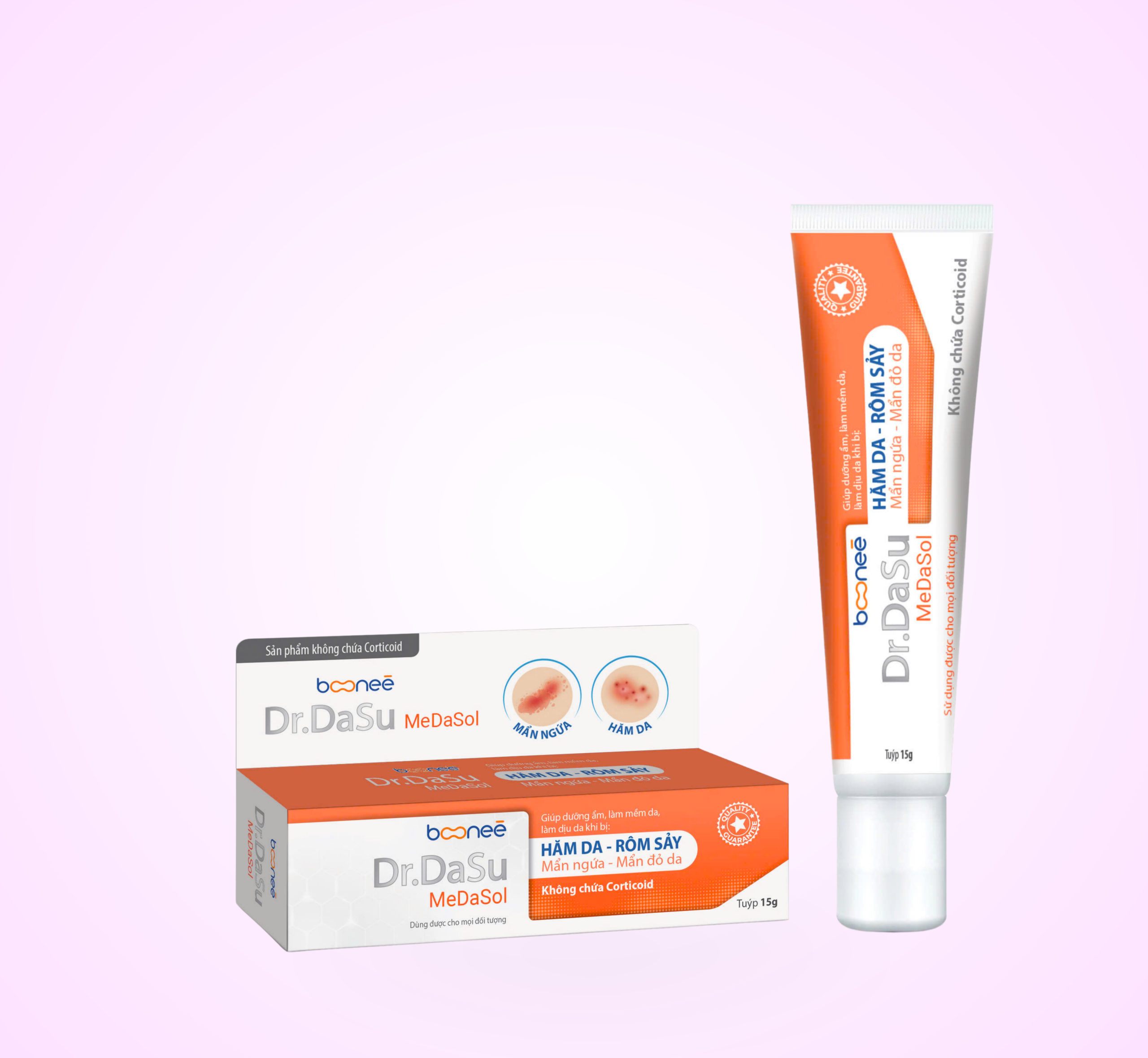 Dr.DaSu MeDaSol là kem dưỡng ẩm chuyên biệt được nghiên cứu và phát triển bởi Công ty Cổ phần Dược phẩm Boonee, giúp hỗ trợ điều trị các vấn đề da liễu thường gặp như hăm da, rôm sảy, mẩn ngứa, mẩn đỏ da và khô da. Sản phẩm được bào chế với công thức không chứa Corticoid, đảm bảo an toàn cho mọi đối tượng sử dụng, kể cả trẻ sơ sinh.